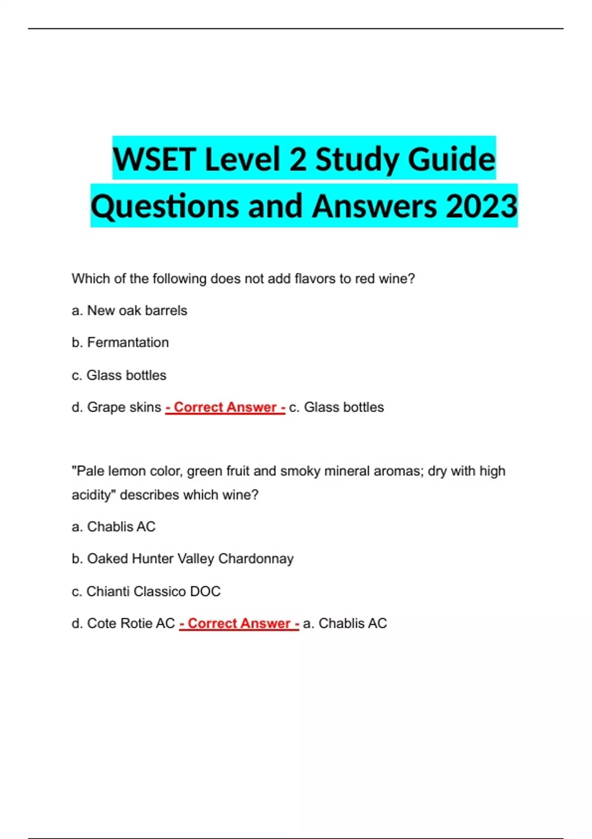 WSET Level 2 Study Guide Questions and Answers 2023 WSET Level 2 Study Guide Questions and Answers 2023 WSET Level 2 Study Guide Questions and Answers 2023