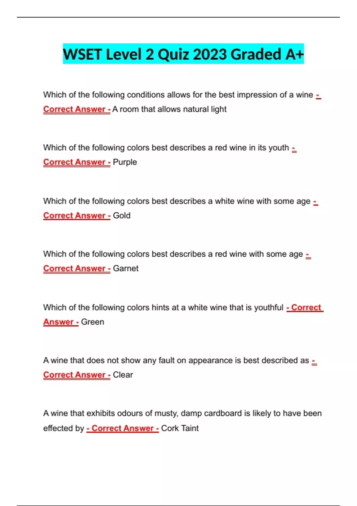 WSET Level 2 Quiz 2023 Graded A+ WSET Level 2 Quiz 2023 Graded A+ WSET Level 2 Quiz 2023 Graded A+
