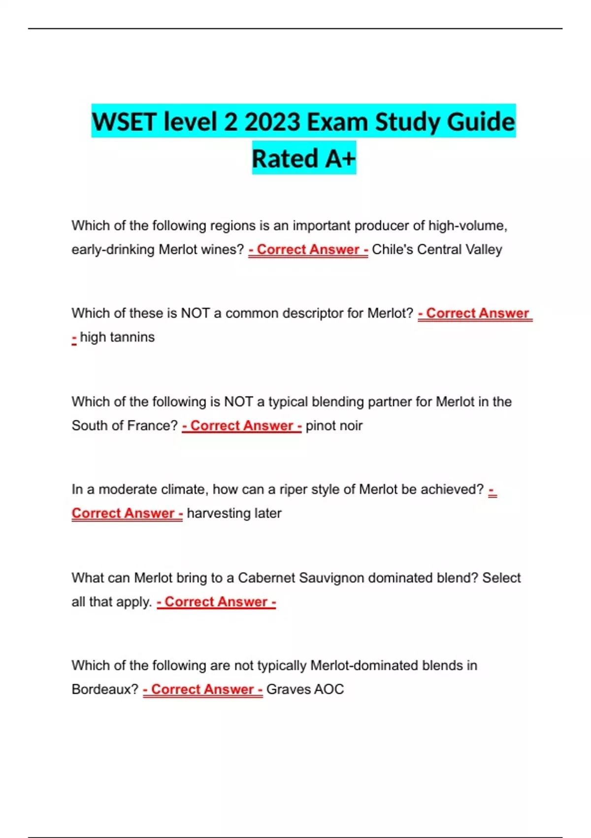 BUNDLE for WSET Level 2 Exam 2023 Questions and Answers Graded A+ | WSET Level 2 Exam Study Guide