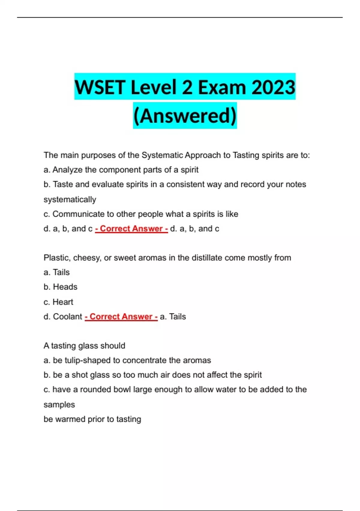 BUNDLE for WSET Level 2 Exam 2023 Questions and Answers Graded A+ | WSET Level 2 Exam Study Guide