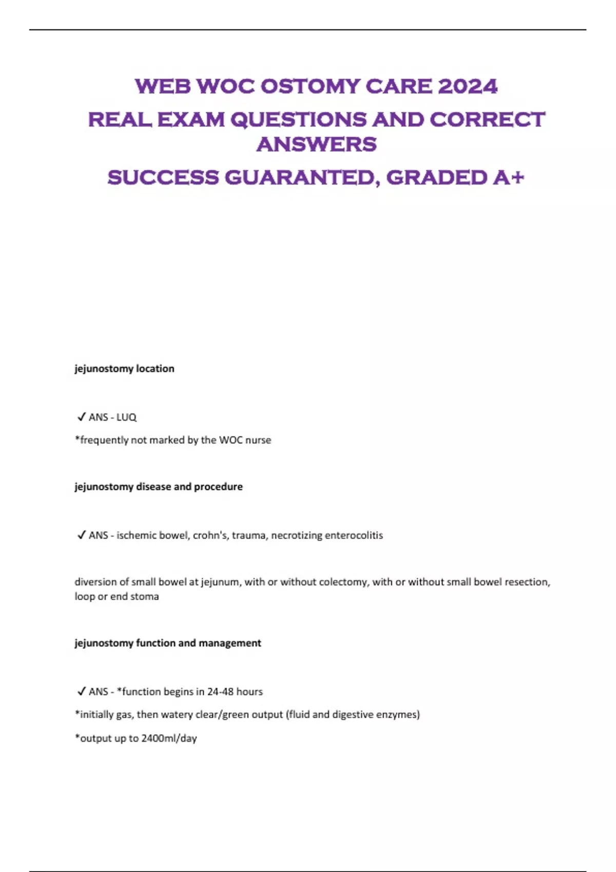 WEB WOC OSTOMY CARE 2024 REAL EXAM QUESTIONS AND CORRECT ANSWERS SUCCESS GUARANTED, GRADED A+