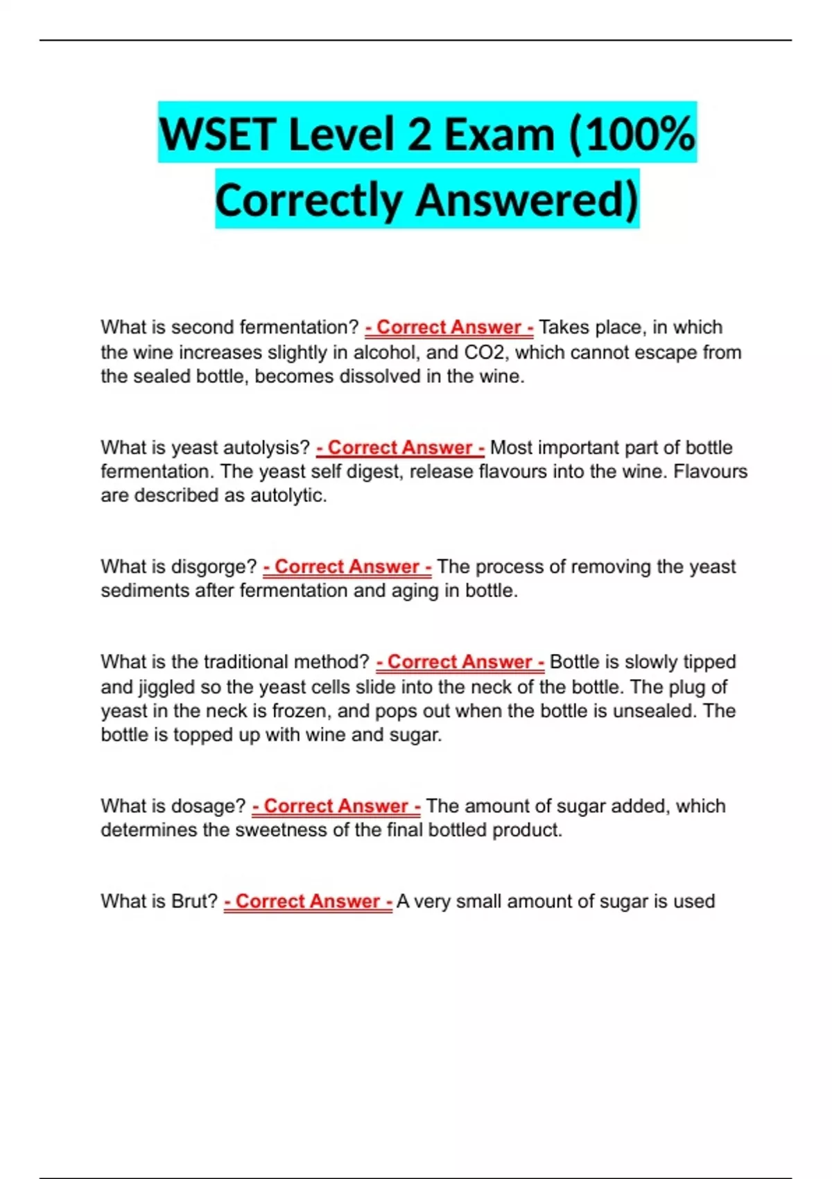 WSET Level 2 Exam (100% Correctly Answered) WSET Level 2 Exam (100% Correctly Answered) WSET Level 2 Exam (100% Correctly Answered)
