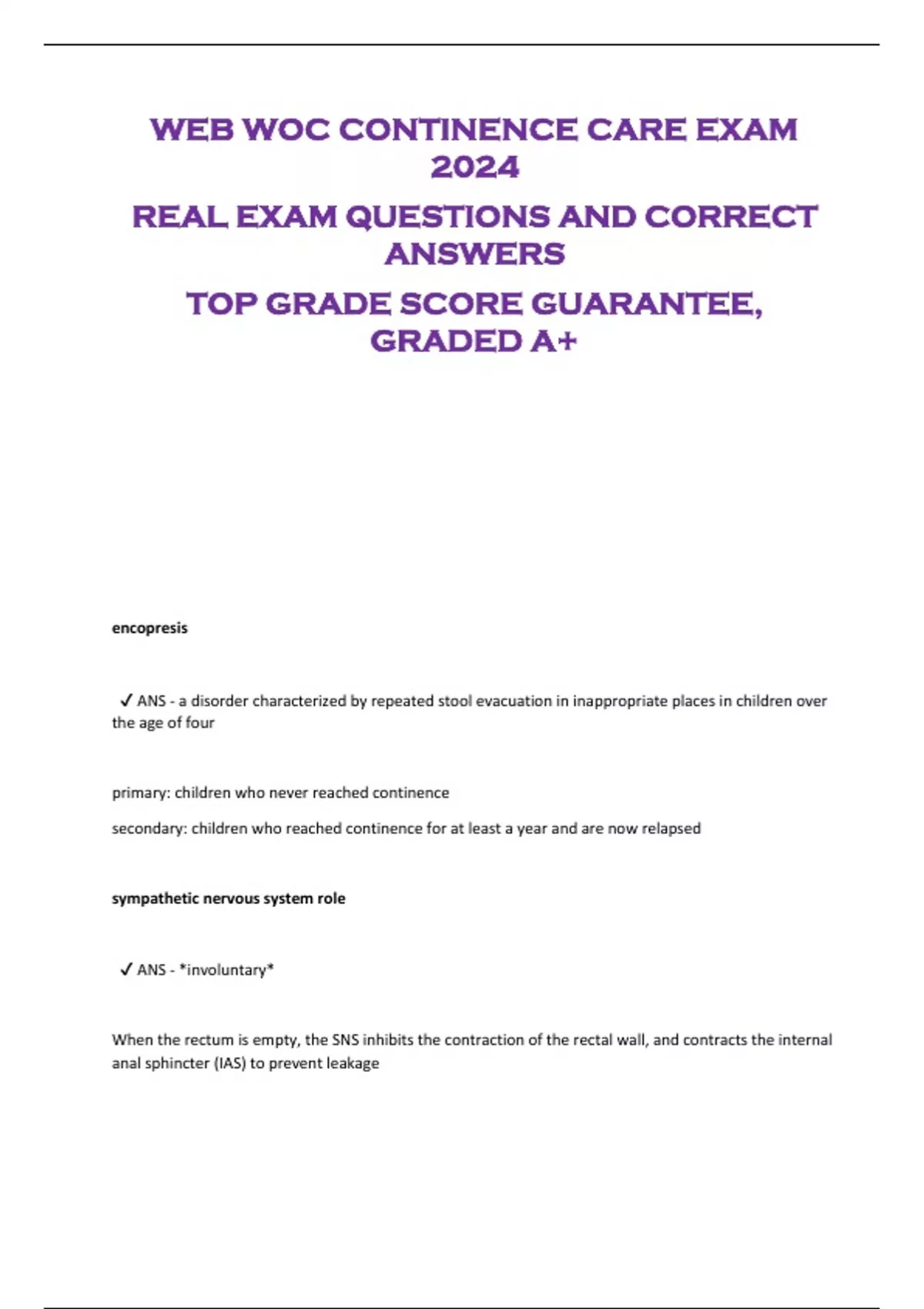 WEB WOC CONTINENCE CARE EXAM 2024 REAL EXAM QUESTIONS AND CORRECT ANSWERS TOP GRADE SCORE GUARANTEE, GRADED A+