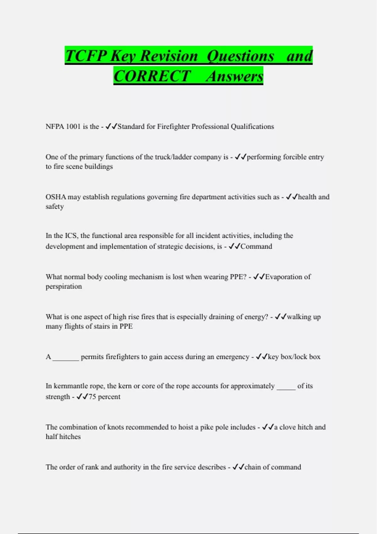 TCFP Key Revision Questions and CORRECT Answers