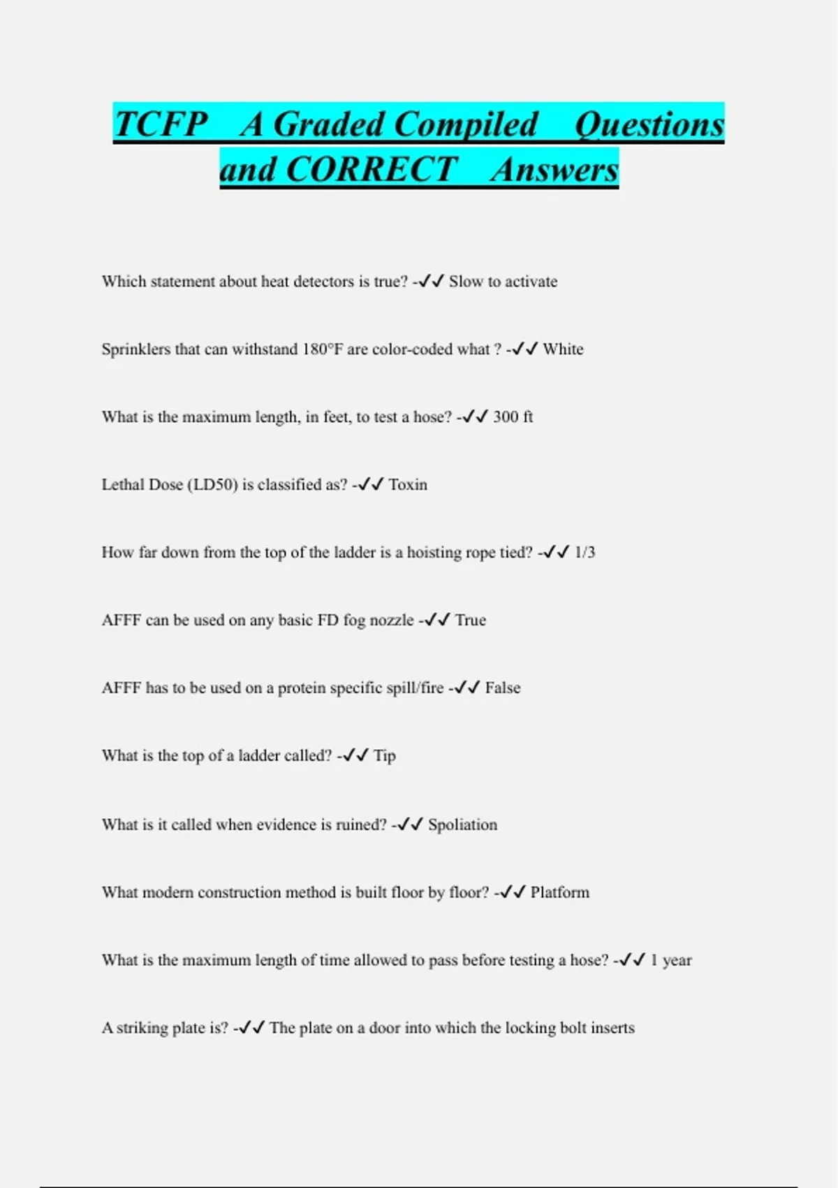 TCFP A Graded Compiled Questions and CORRECT Answers