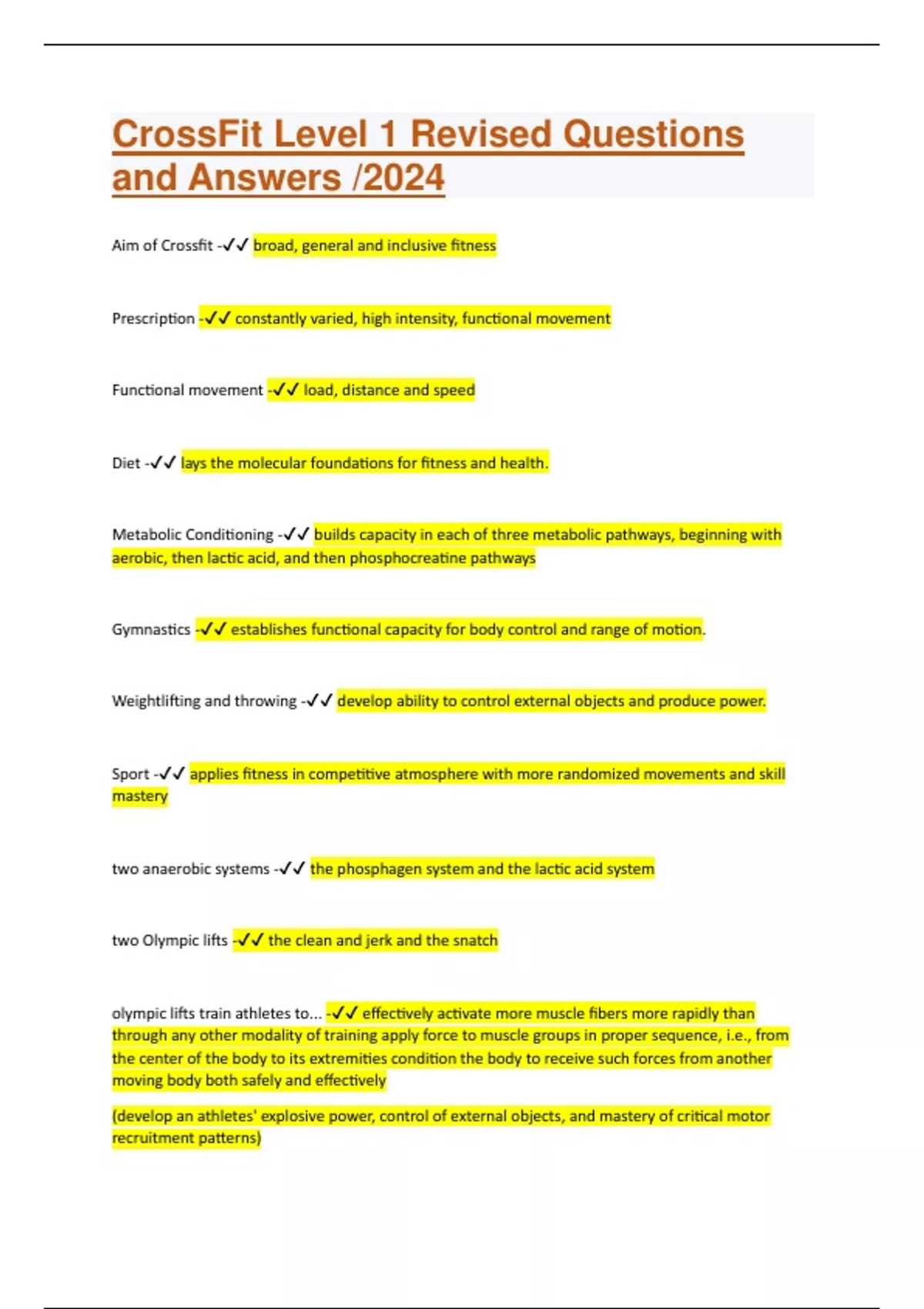 CrossFit Level 1 Revised Questions and Answers /2024