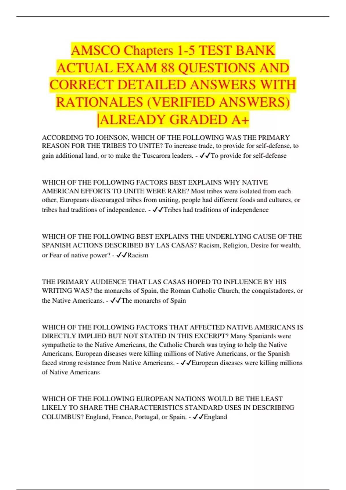 ACCORDING TO JOHNSON, WHICH OF THE FOLLOWING WAS THE PRIMARY REASON FOR THE TRIBES TO UNITE? To increase trade, to provide for self-defense, to gain additional land, or to make the Tuscarora leaders. - To provide for self-defense WHICH OF THE FOLLOWING FACTORS BEST EXPLAINS WHY NATIVE AMERICAN EFFORTS TO UNITE WERE RARE? Most tribes were isolated from each other, Europeans discouraged tribes from uniting, people had different foods and cultures, or tribes had traditions of independence. - Tribes had traditions of independence WHICH OF THE FOLLOWING BEST EXPLAINS THE UNDERLYING CAUSE OF THE SPANISH ACTIONS DESCRIBED BY LAS CASAS? Racism, Religion, Desire for wealth, or Fear of native power? - Racism THE PRIMARY AUDIENCE THAT LAS CASAS HOPED TO INFLUENCE BY HIS WRITING WAS? the monarchs of Spain, the Roman Catholic Church, the conquistadores, or the Native Americans. - The monarchs of Spain WHICH OF THE FOLLOWING FACTORS THAT AFFECTED NATIVE AMERICANS IS DIRECTLY IMPLIED BUT NOT STATED IN THIS EXCERPT? Many Spaniards were sympathetic to the Native Americans, the Catholic Church was trying to help the Native Americans, European diseases were killing millions of Native Americans, or the Spanish faced strong resistance from Native Americans. - European diseases were killing millions of Native Americans