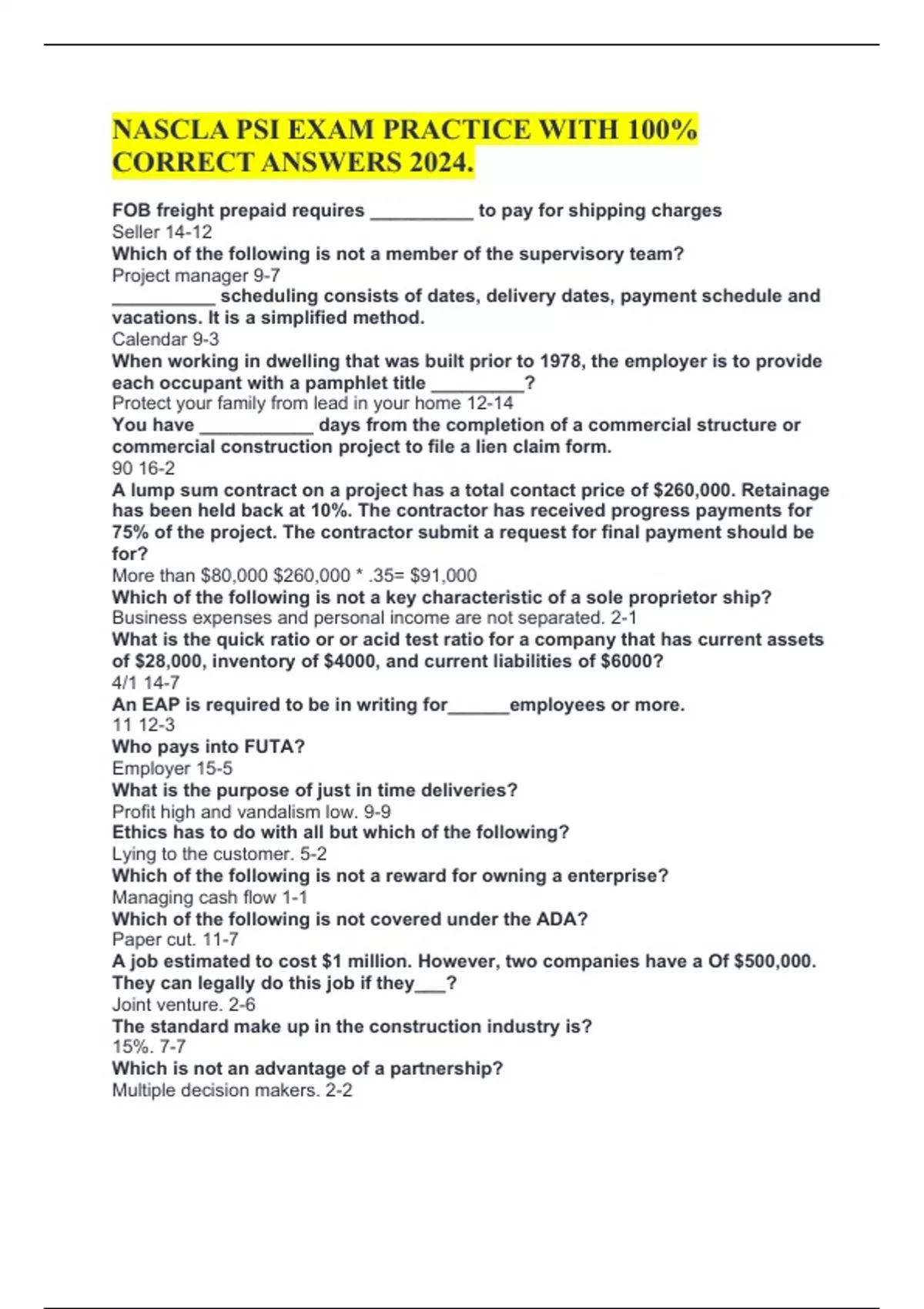 NASCLA PSI EXAM PRACTICE WITH 100% CORRECT ANSWERS 2024.