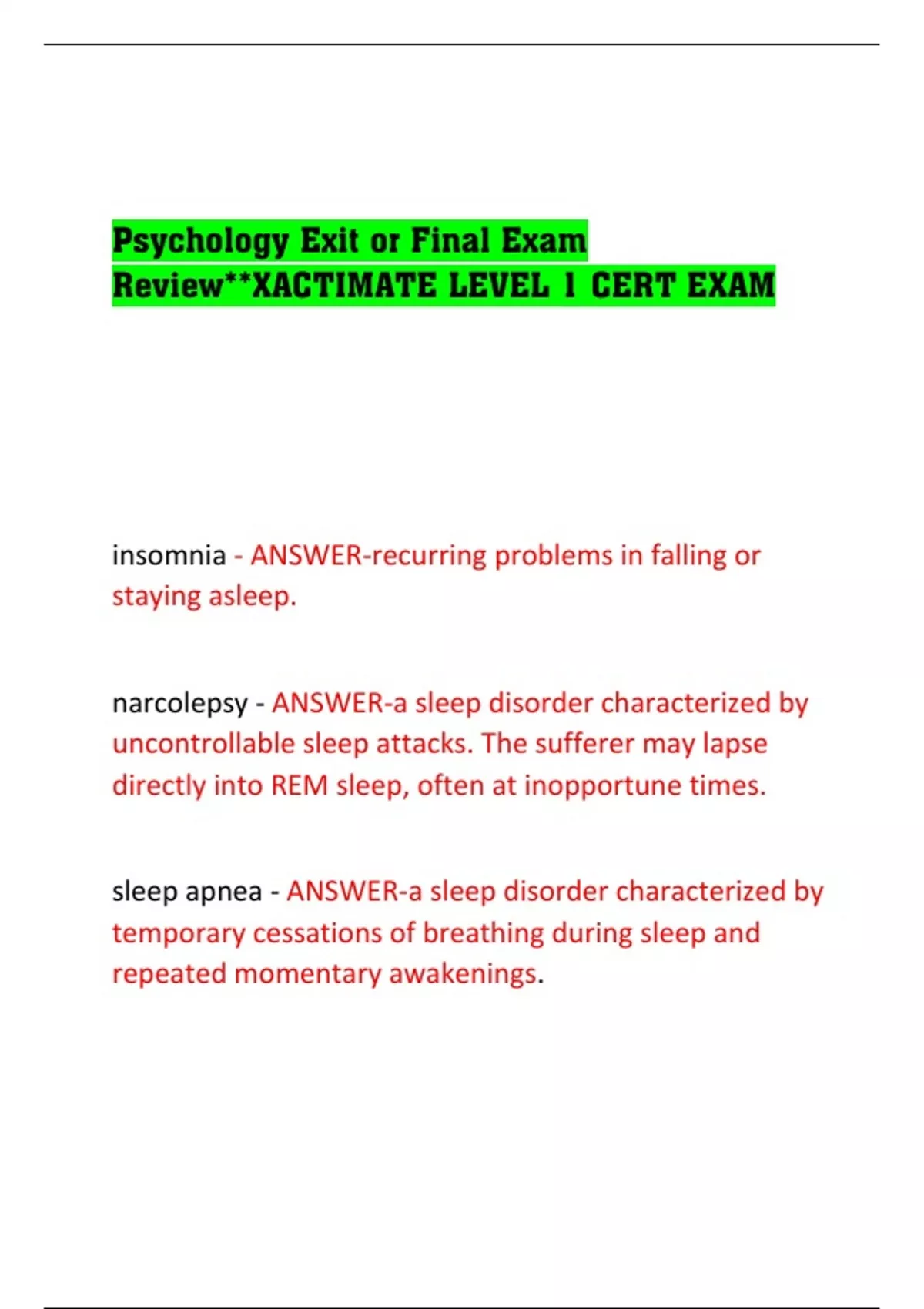 Psychology Exit or Final Exam Review**XACTIMATE LEVEL 1 CERT EXAM
