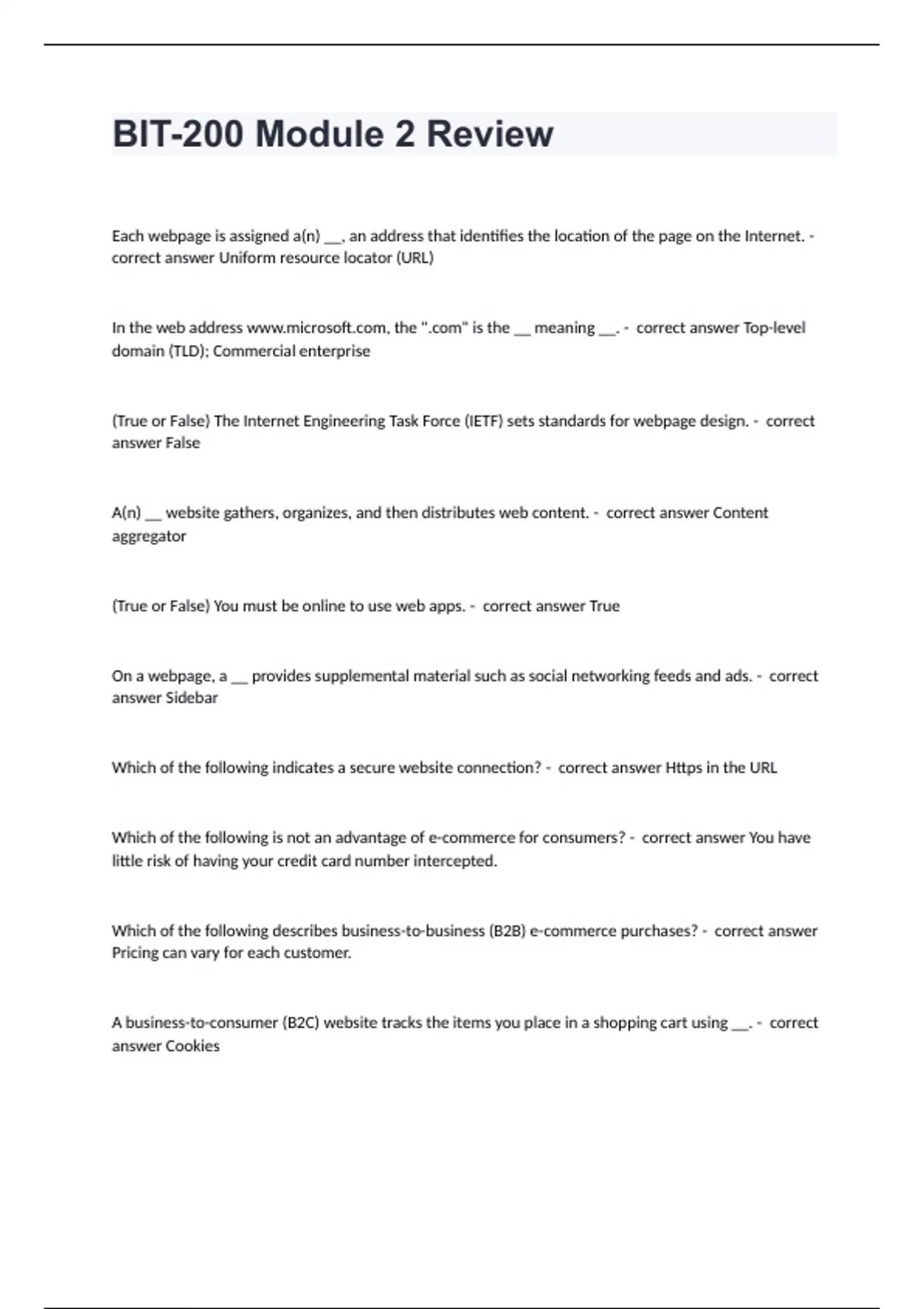 bit 200 module 2 review questions with completed s