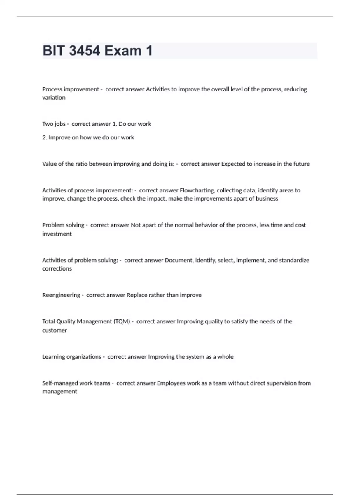 BIT 3454 Exam 1 questions and answers certified 2024