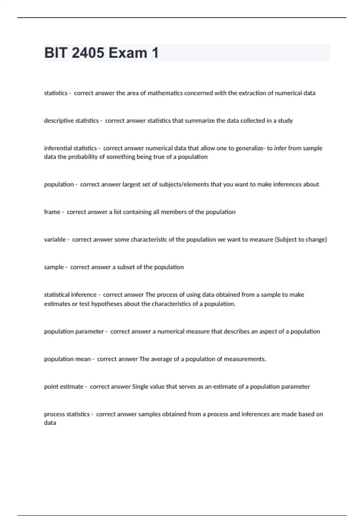 BIT 2405 Exam 1 questions and answers verified 2024