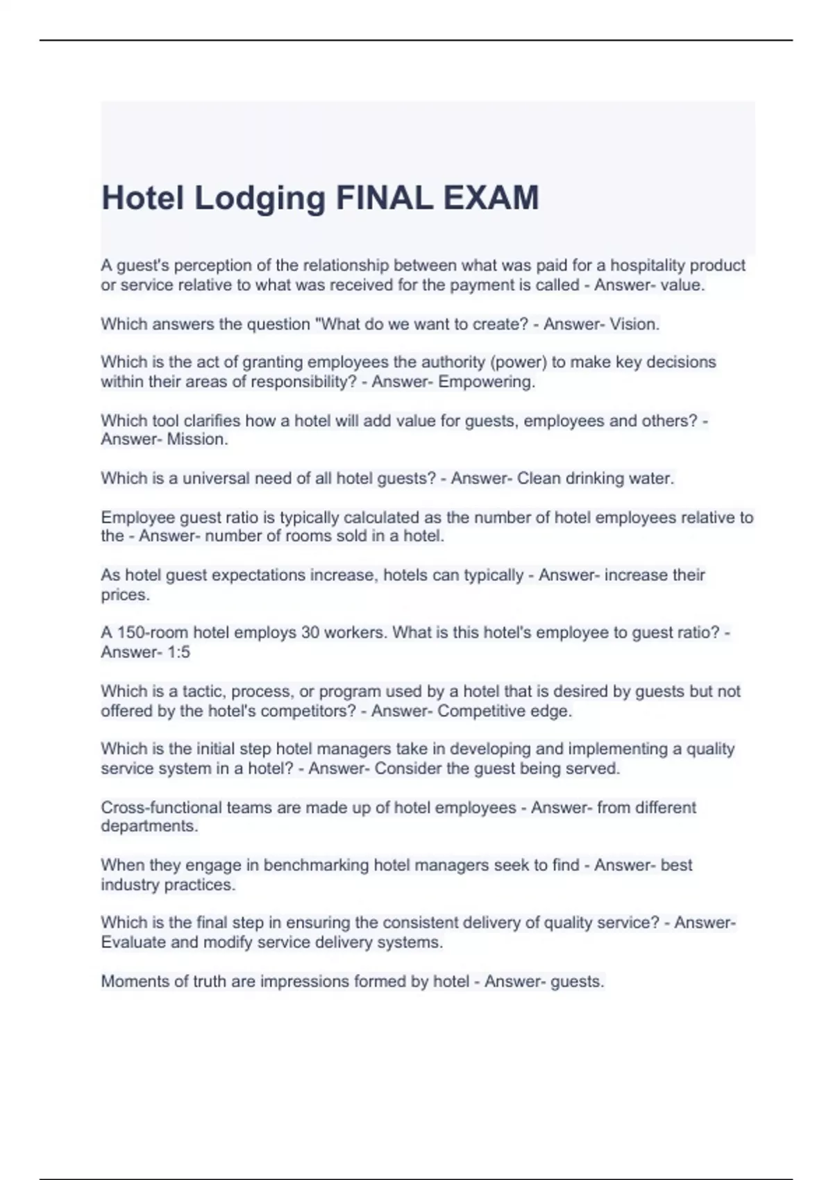 Hotel Lodging FINAL EXAM Questions and Answers - Graded A