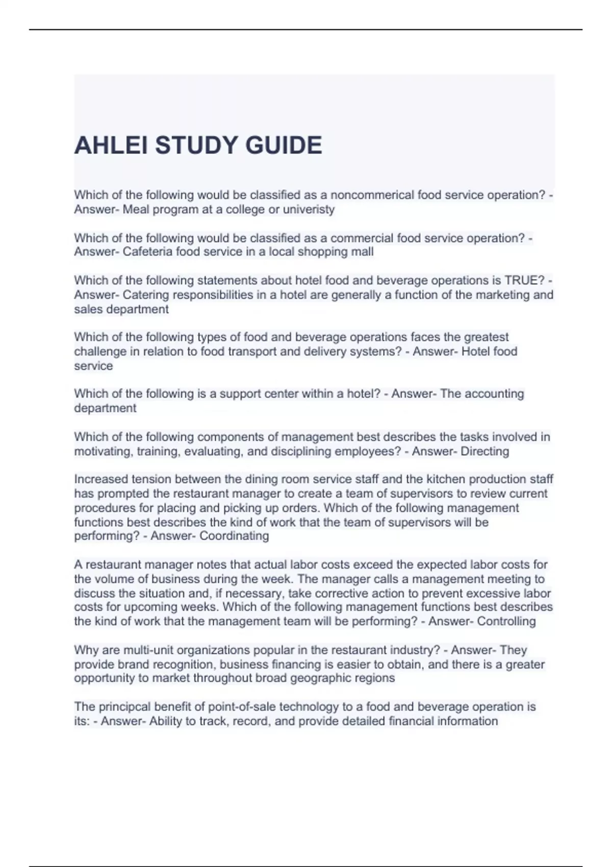 AHLEI STUDY GUIDE QUESTIONS AND ANSWERS 2024