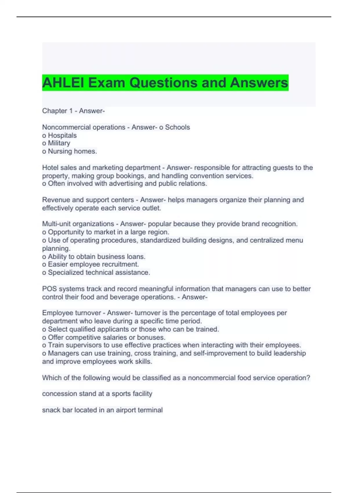 AHLEI Exam Questions and Answers 2024 / Graded A
