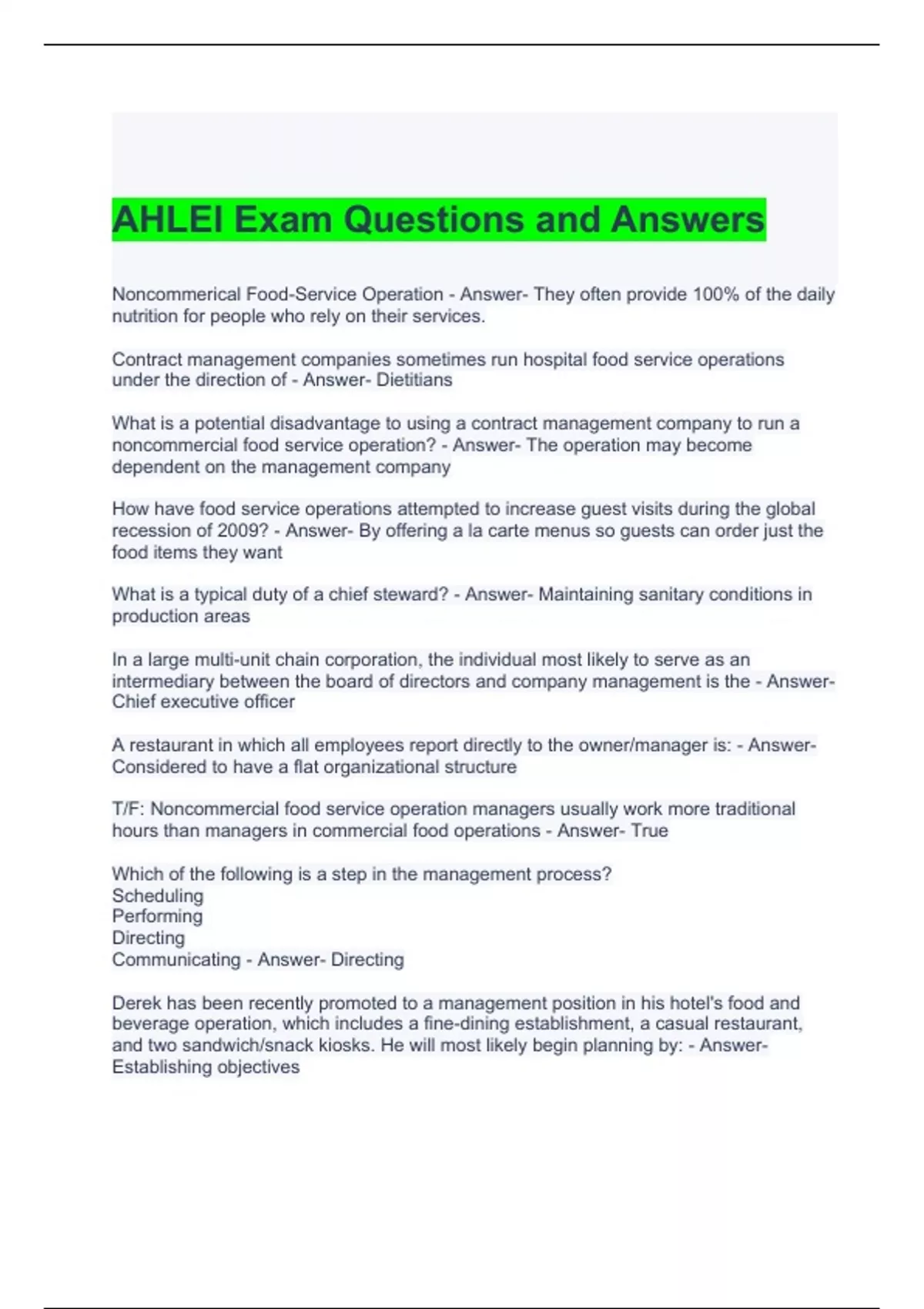 AHLEI Exam Questions and Answers