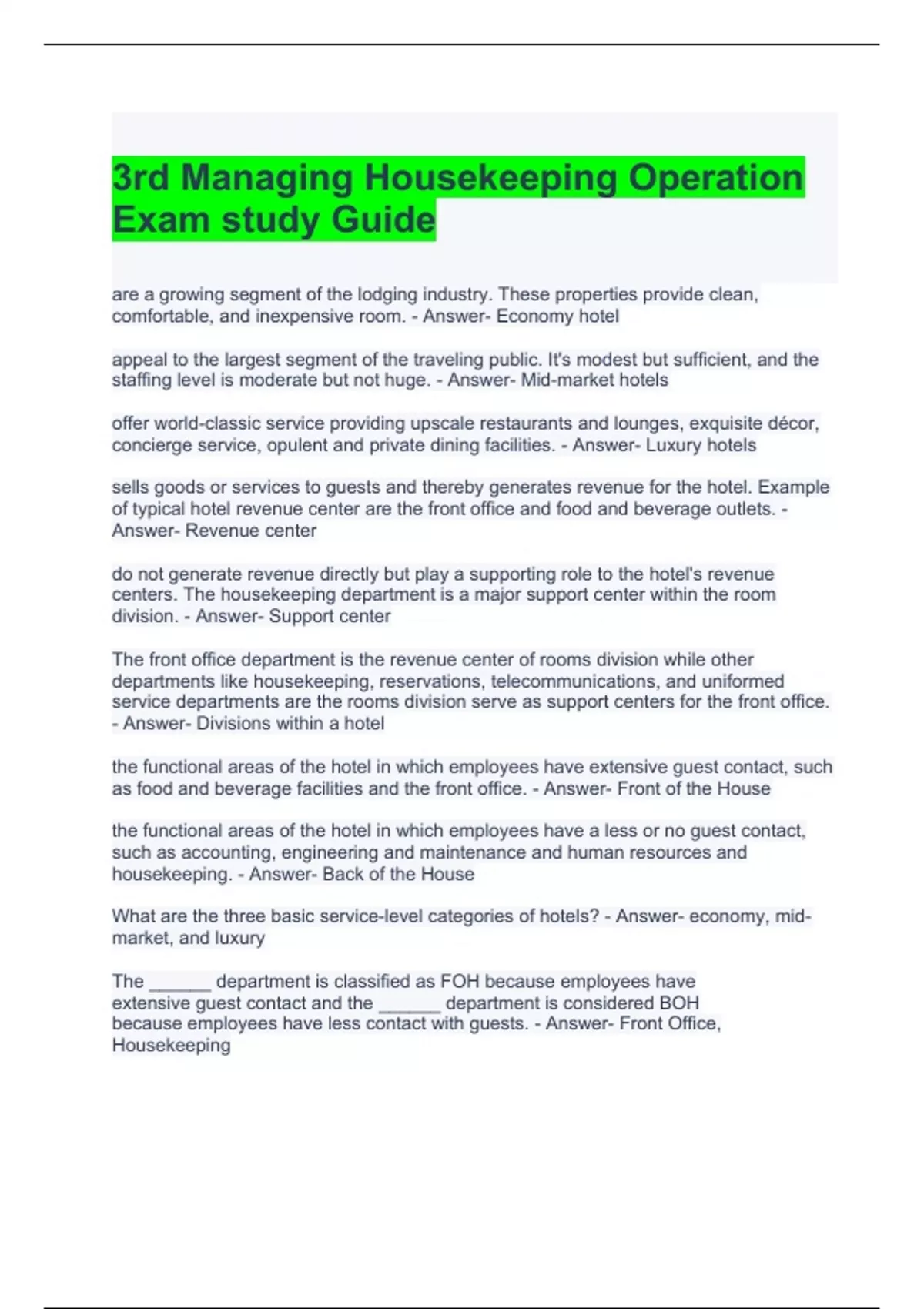 3rd Managing Housekeeping Operation Exam study Guide 2024