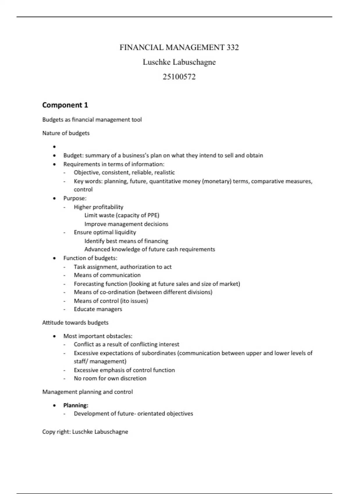 In-depth summaries, class notes, exercises and examples for financial management 332.
