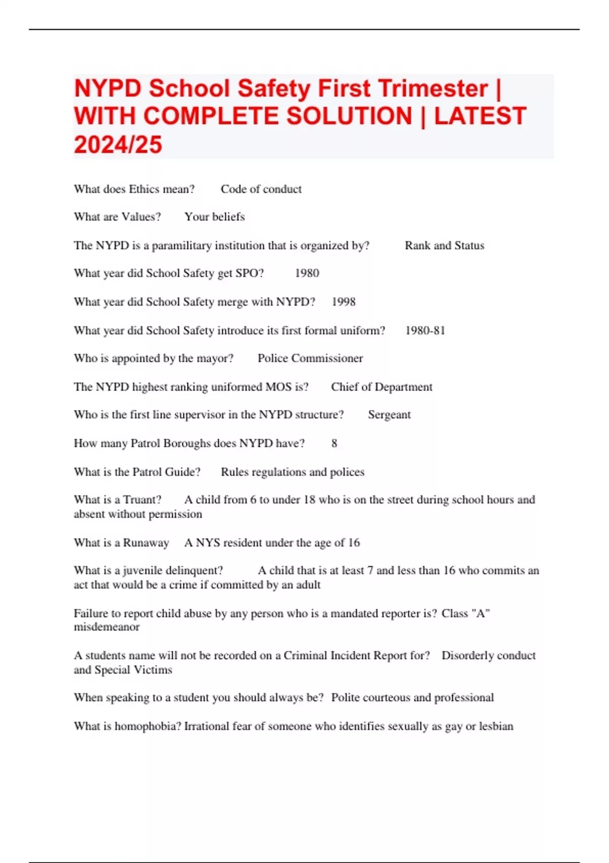 NYPD School Safety First Trimester | WITH COMPLETE SOLUTION | LATEST 2024/25