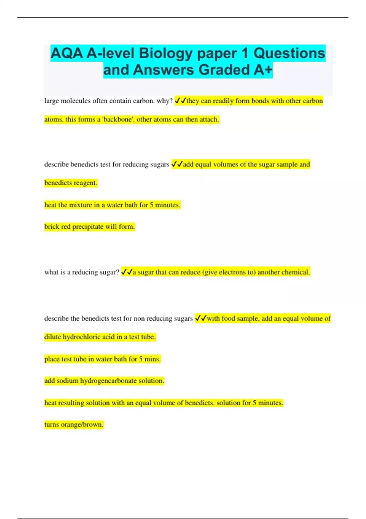 AQA A-level Biology paper 1 Questions and Answers Graded A+