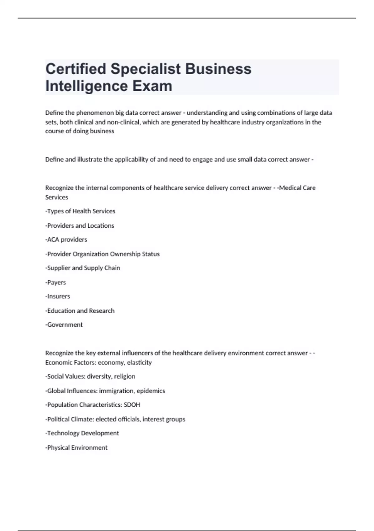 Certified Specialist Business Intelligence Exam And Correct Answer.