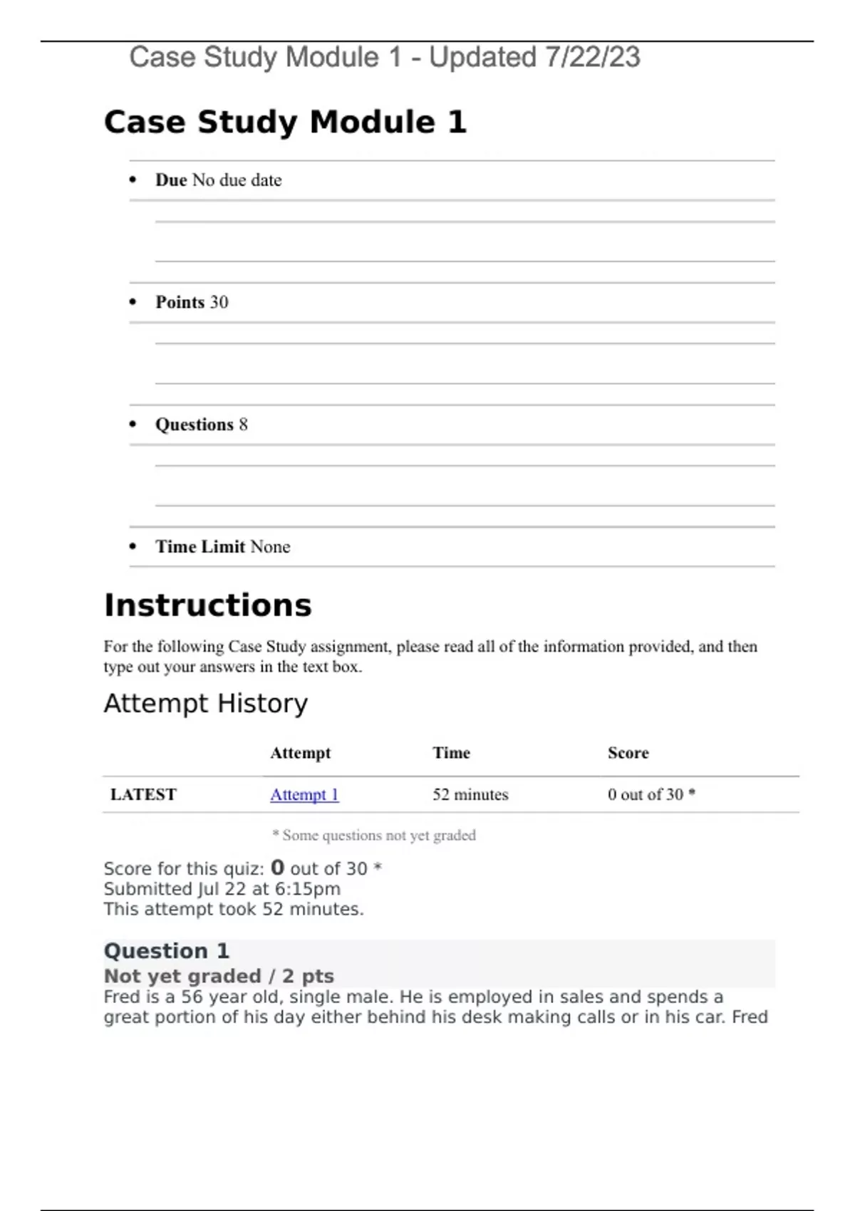 Case Study Module 1 - Updated 7/22/23 Questions & Answers: Guaranteed A+ Guide