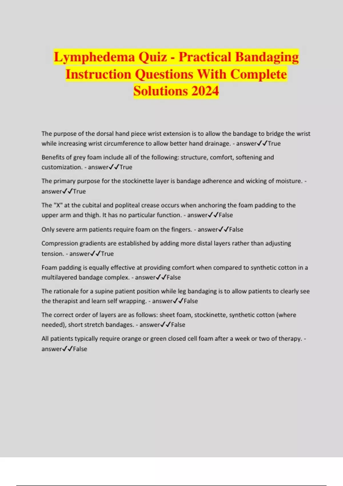 Lymphedema Quiz - Practical Bandaging Instruction Questions With Complete Solutions 2024