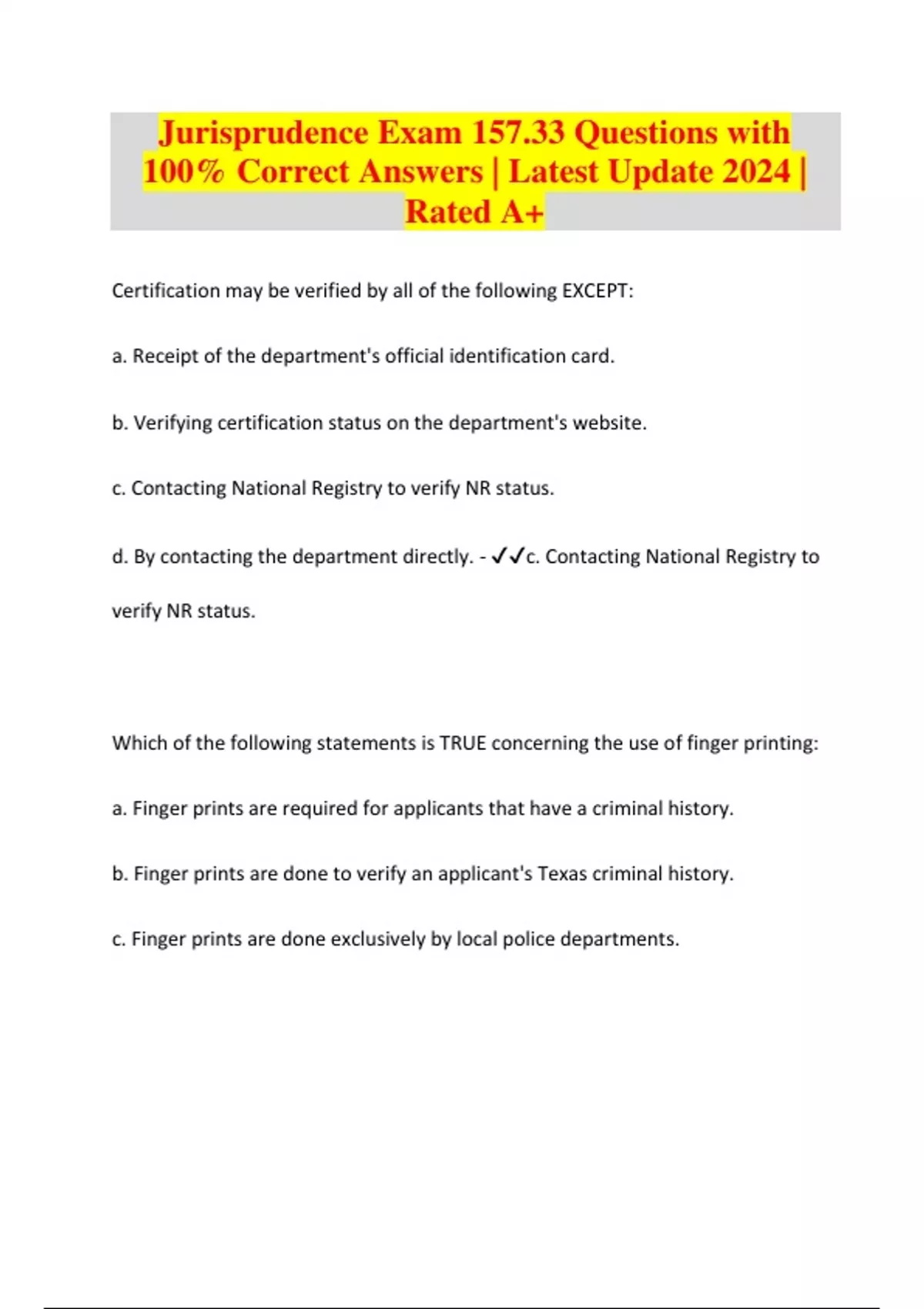 Jurisprudence Exam 157.33 Questions with 100% Correct Answers | Latest Update 2024 | Rated A+