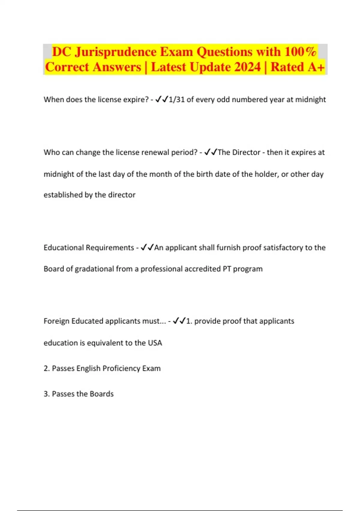 DC Jurisprudence Exam Questions with 100% Correct Answers | Latest Update 2024 | Rated A+
