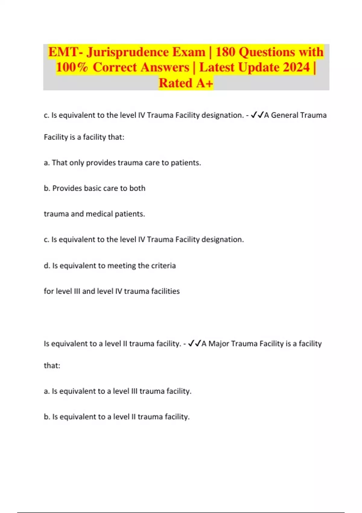 EMT- Jurisprudence Exam | 180 Questions with 100% Correct Answers | Latest Update 2024 | Rated A+