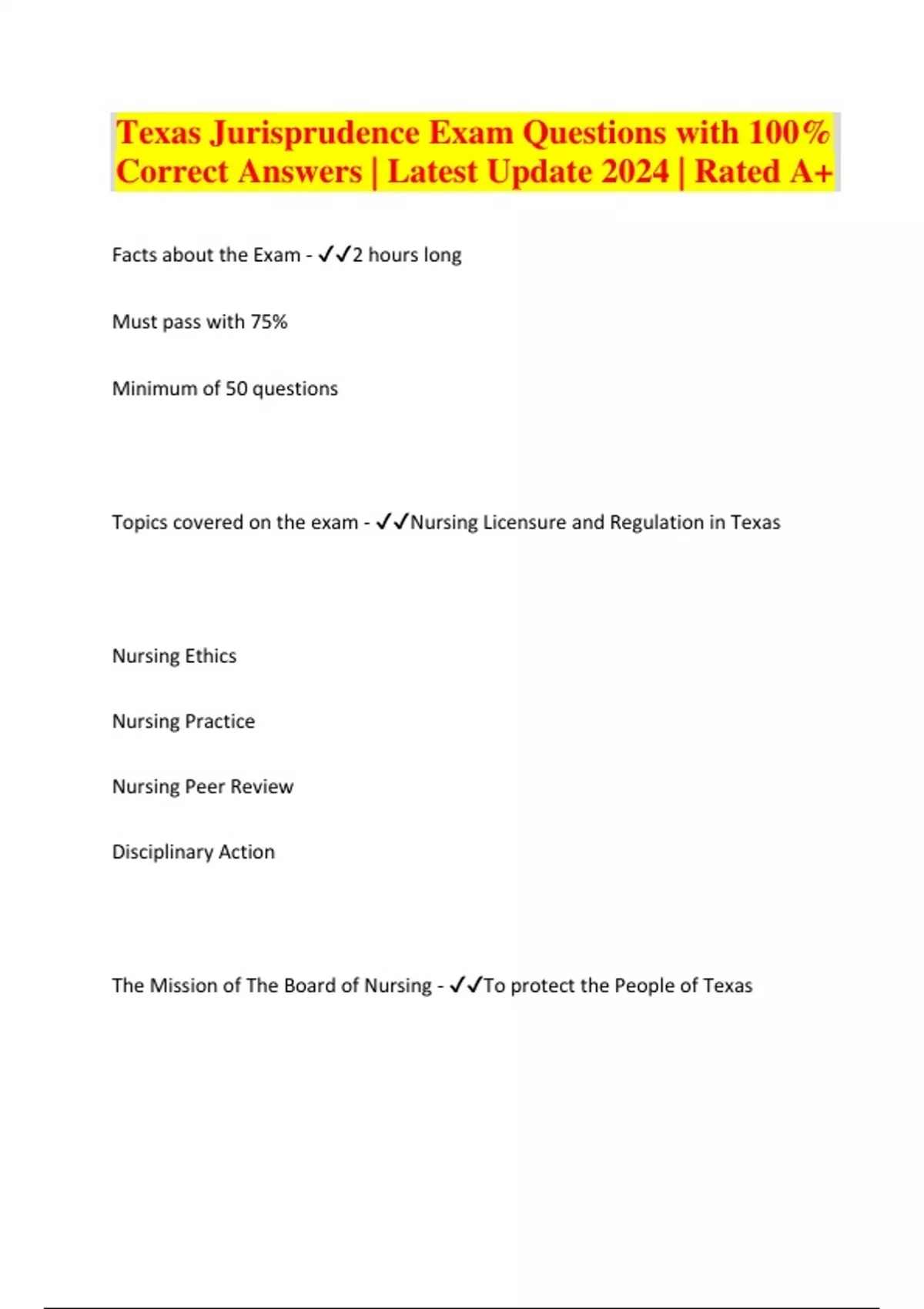 Texas Jurisprudence Exam Questions with 100% Correct Answers | Latest Update 2024 | Rated A+
