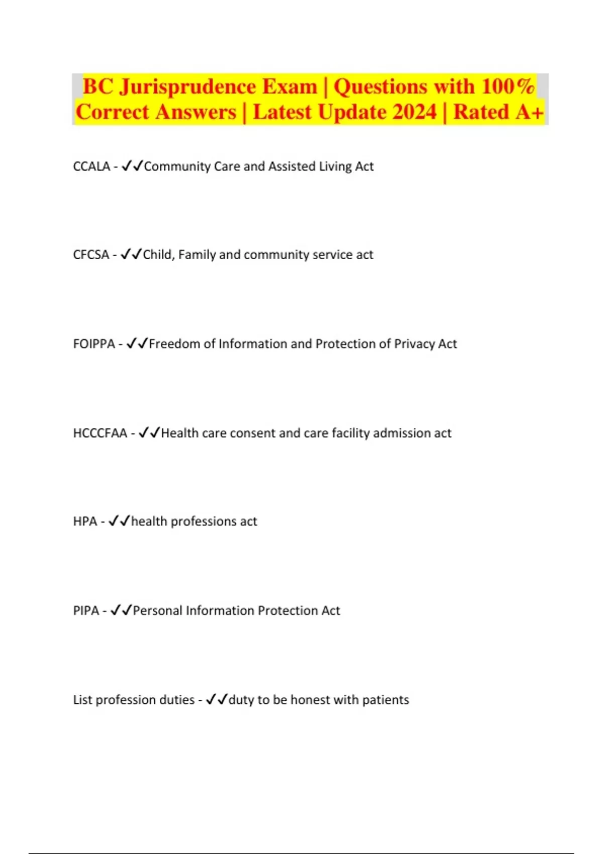 BC Jurisprudence Exam | Questions with 100% Correct Answers | Latest Update 2024 | Rated A+