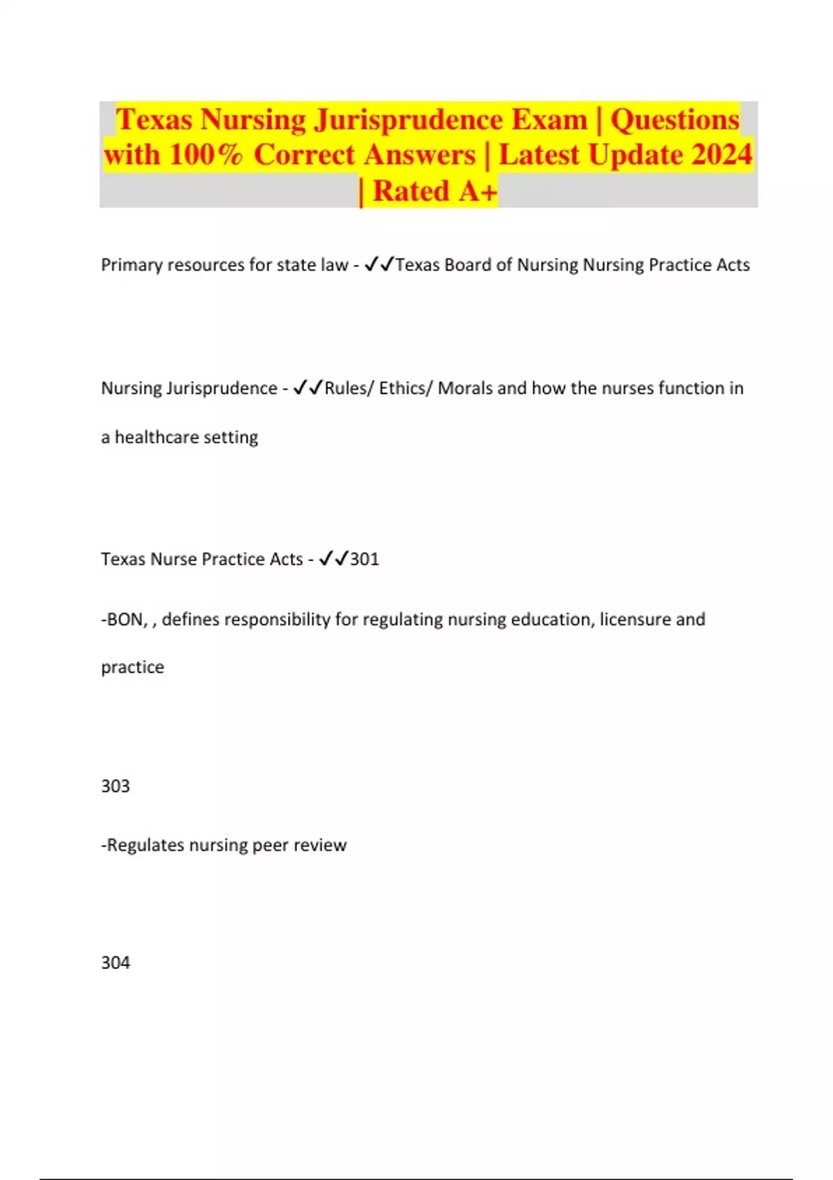 Texas Nursing Jurisprudence Exam | Questions with 100% Correct Answers | Latest Update 2024 | Rated A+