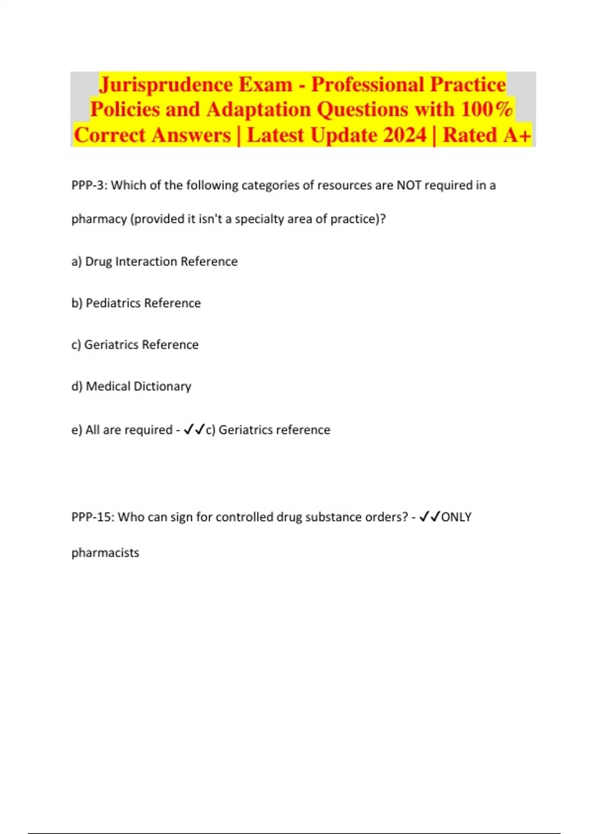 Jurisprudence Bundled Exams Questions and Answers Multiple Versions 2024/2025 with 100% Correct Answers | Guaranteed A+| 100% pass