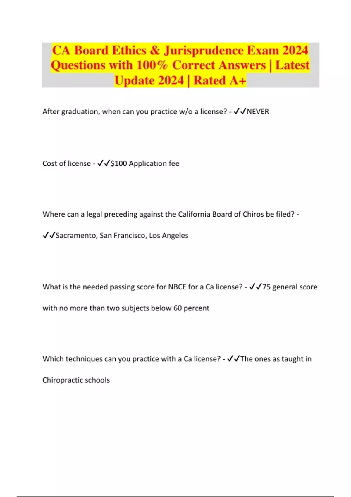 CA Board Ethics & Jurisprudence Exam 2024 Questions with 100% Correct Answers | Latest Update 2024 | Rated A+