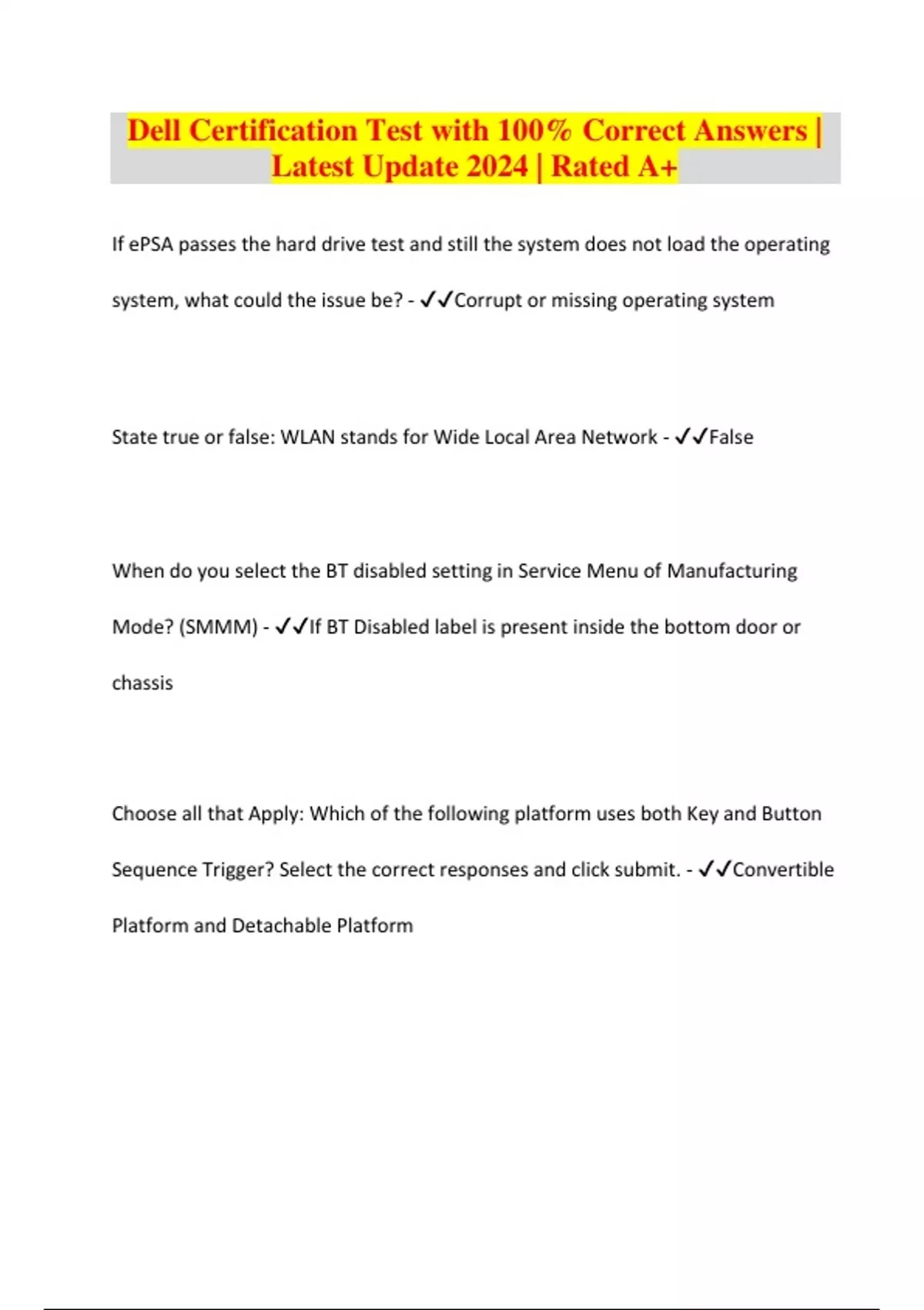 Dell Certification Test with 100% Correct Answers | Latest Update 2024 | Rated A+