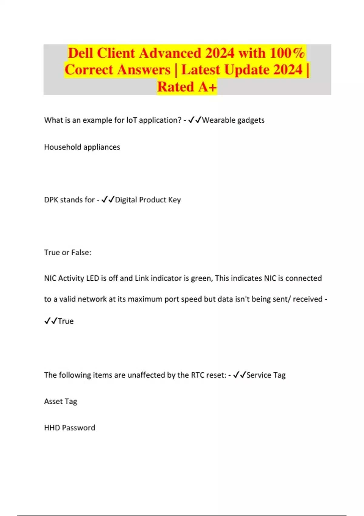 Bundle For Dell Client Foundations Exams Questions and Answers Latest Update 2024/2025 | 100% Complete and Accurate