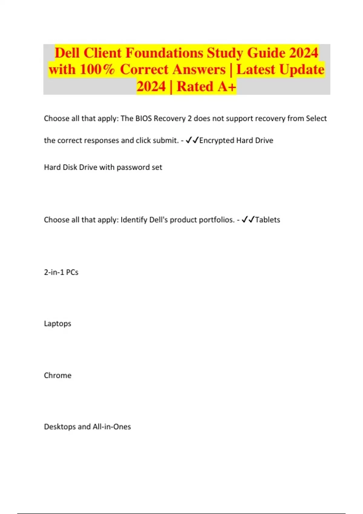 Bundle For Dell Client Foundations Exams Questions and Answers Latest Update 2024/2025 | 100% Complete and Accurate