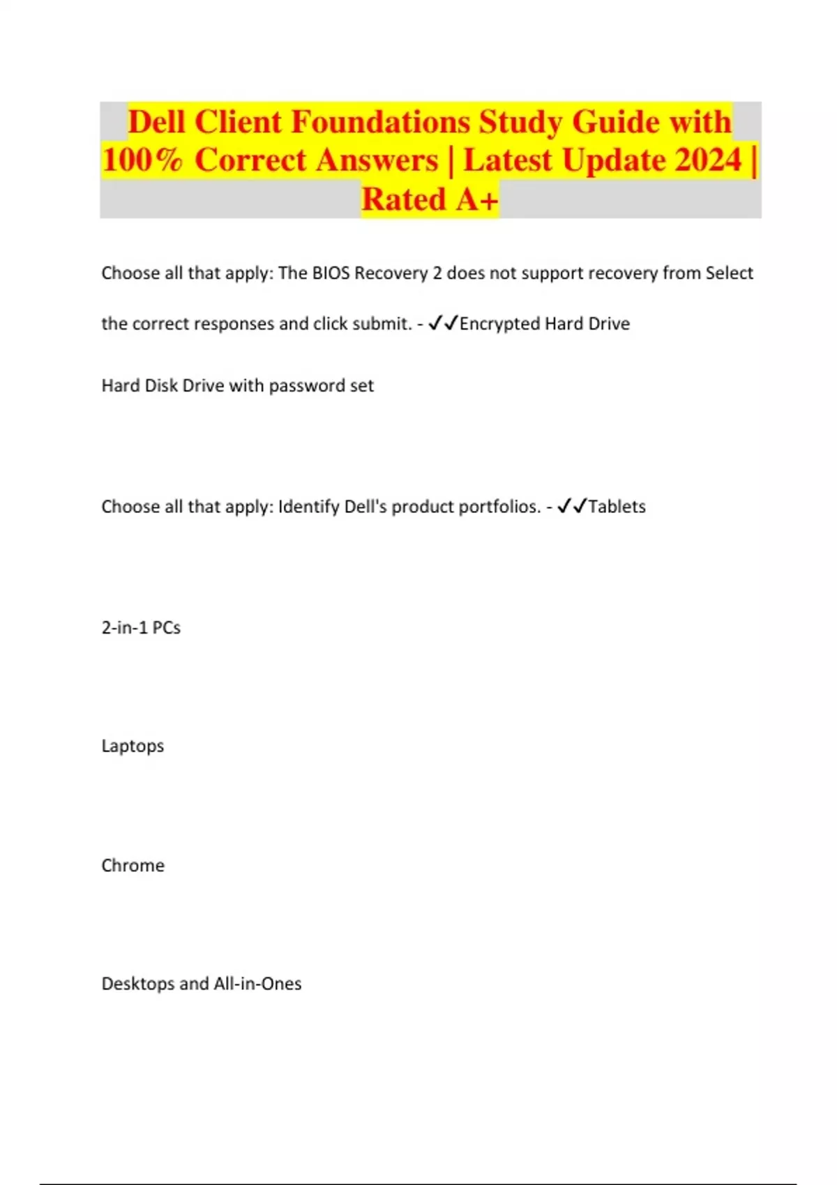 Bundle For Dell Client Foundations Exams Questions and Answers Latest Update 2024/2025 | 100% Complete and Accurate