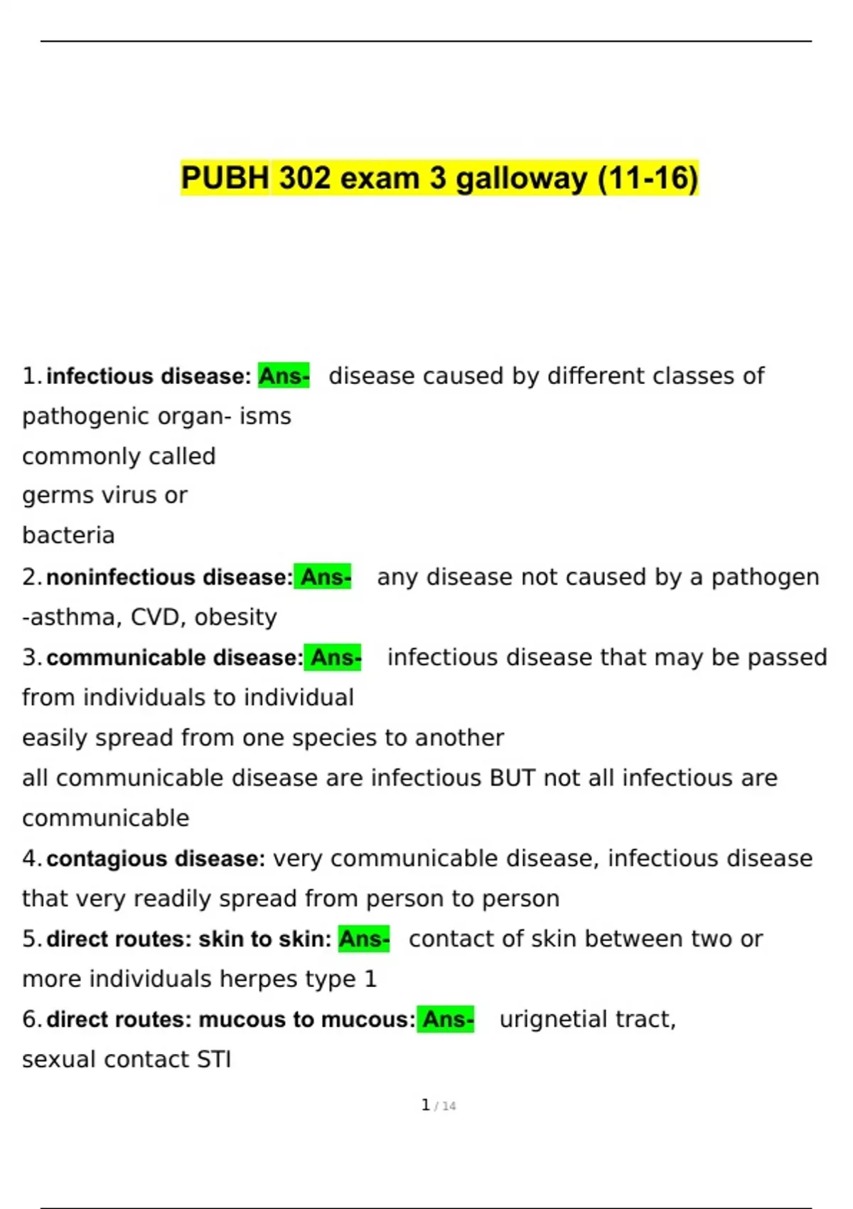 PUBH 302 Galloway Exam 3 | 100% Correct Answers | Verified | Latest 2024 Version