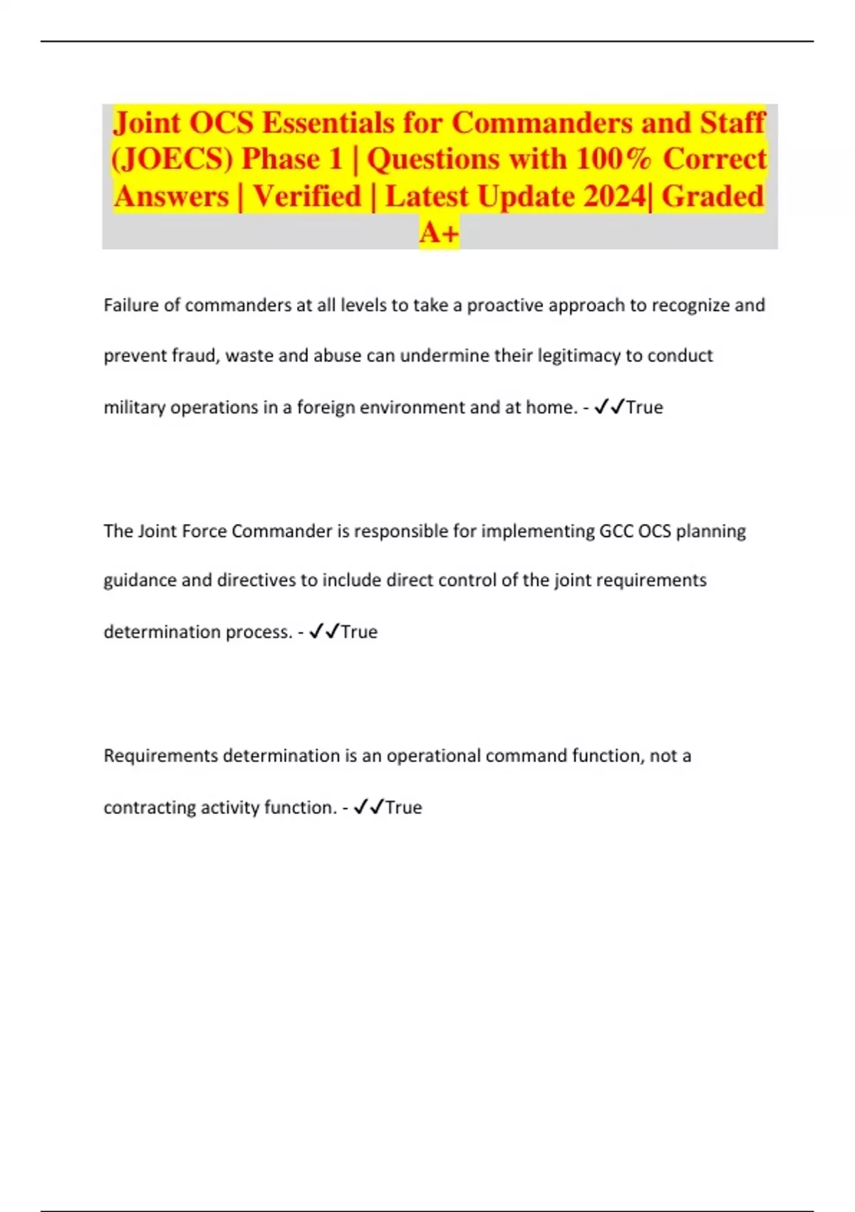 Joint OCS Essentials for Commanders and Staff (JOECS) Phase 1 | Questions with 100% Correct Answers | Verified | Latest Update 2024| Graded A+