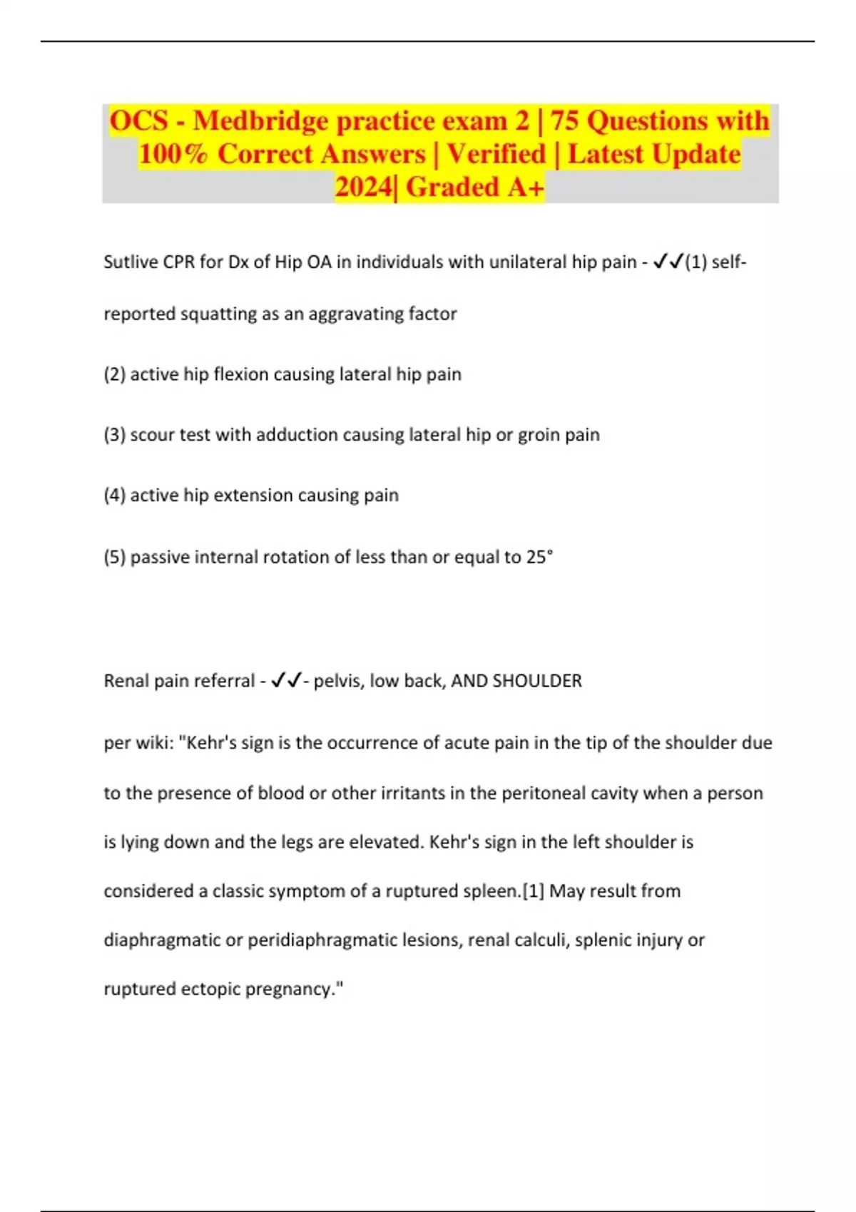 OCS - Medbridge practice exam 2 | 75 Questions with 100% Correct Answers | Verified | Latest Update 2024| Graded A+