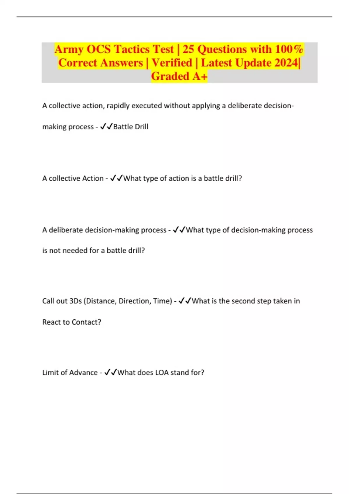 Army OCS Tactics Test | 25 Questions with 100% Correct Answers | Verified | Latest Update 2024| Graded A+