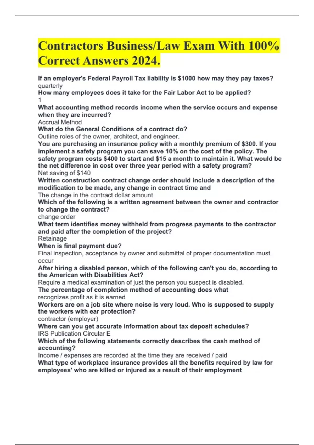 Contractors Business/Law Exam With 100% Correct Answers 2024.