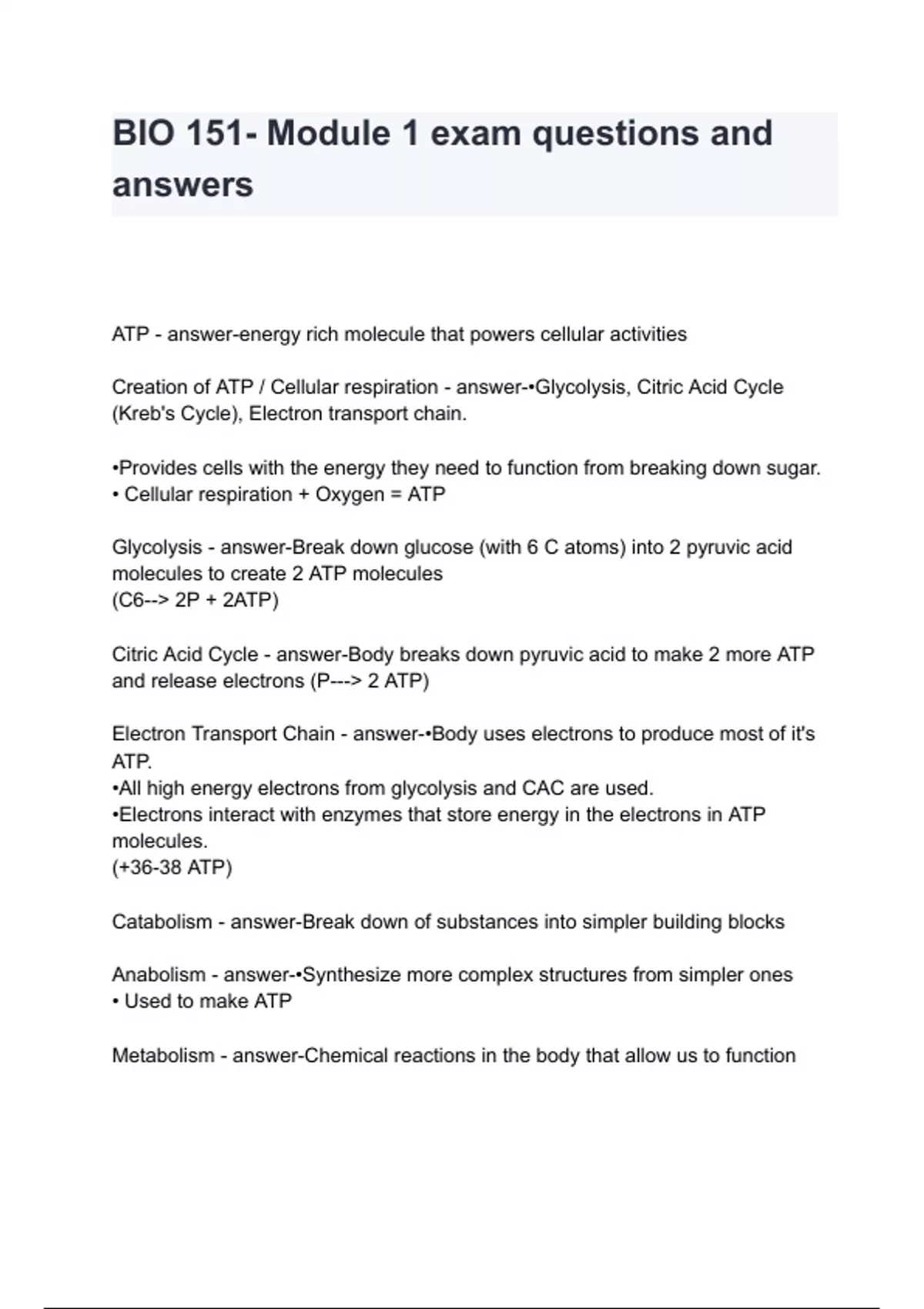 BIO 151- Module 1 exam questions and answers