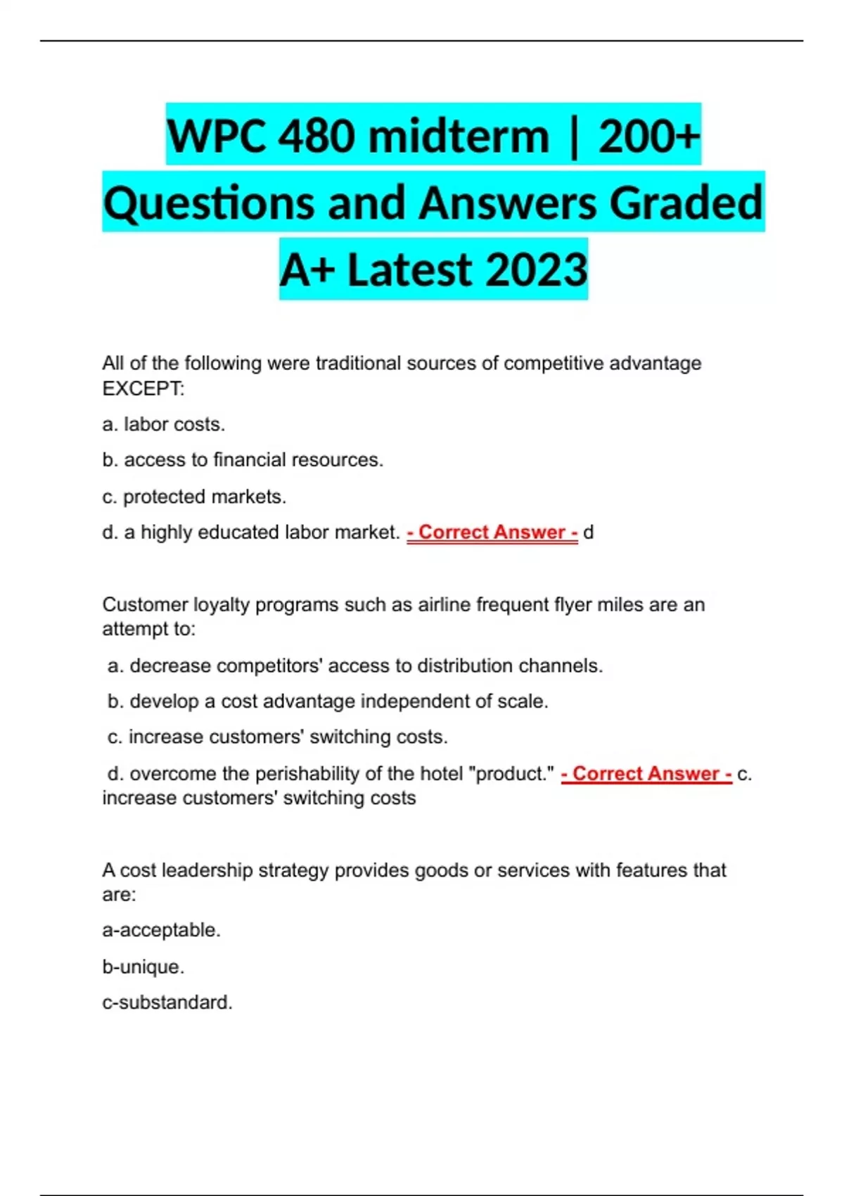 WPC 480 midterm | 200+ Questions and Answers Graded A+ Latest 2023 WPC 480 midterm | 200+ Questions and Answers Graded A+ Latest 2023 WPC 480 midterm | 200+ Questions and Answers Graded A+ Latest 2023