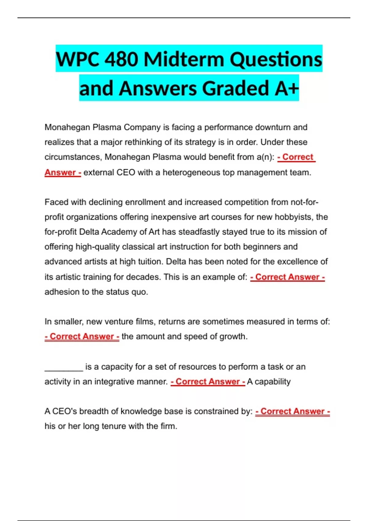 WPC 480 Midterm Questions and Answers Graded A+ WPC 480 Midterm Questions and Answers Graded A+ WPC 480 Midterm Questions and Answers Graded A+