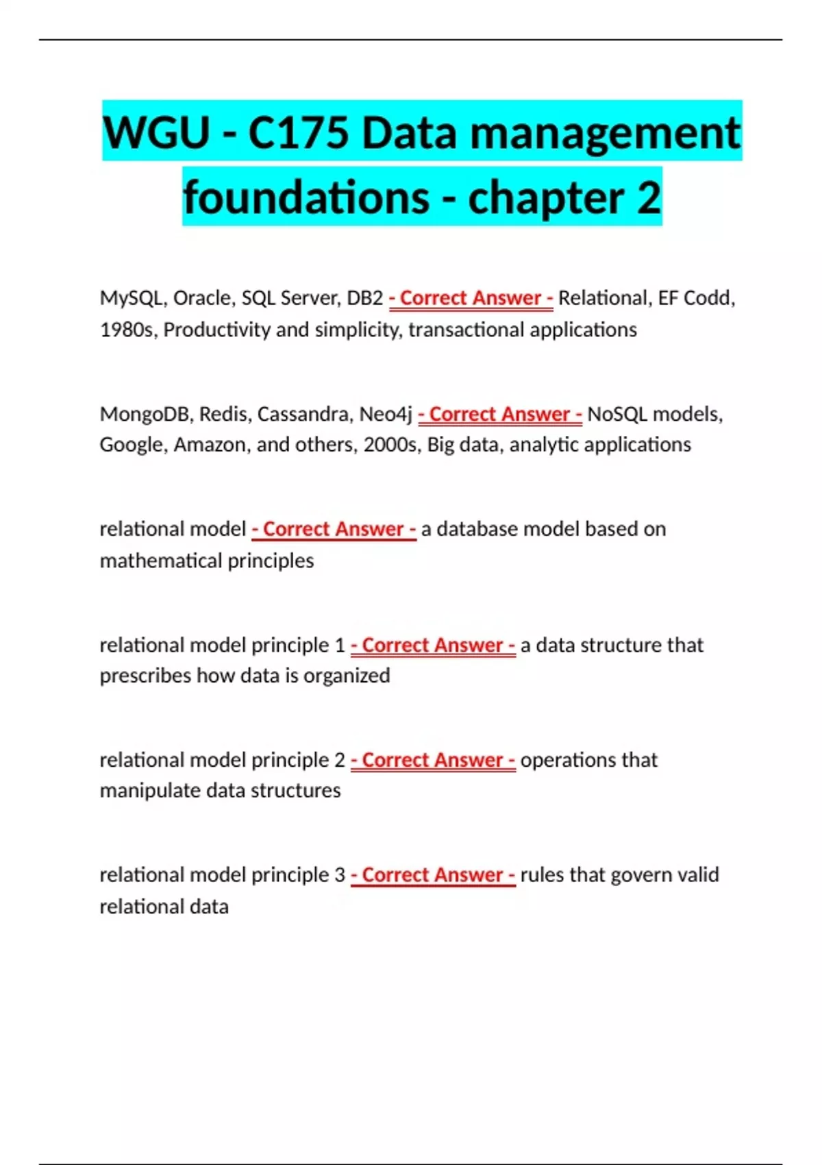 BUNDLE for WGU D426 V2 Exam | Data Management Foundations Questions and Answers Graded A+ Latest 2024