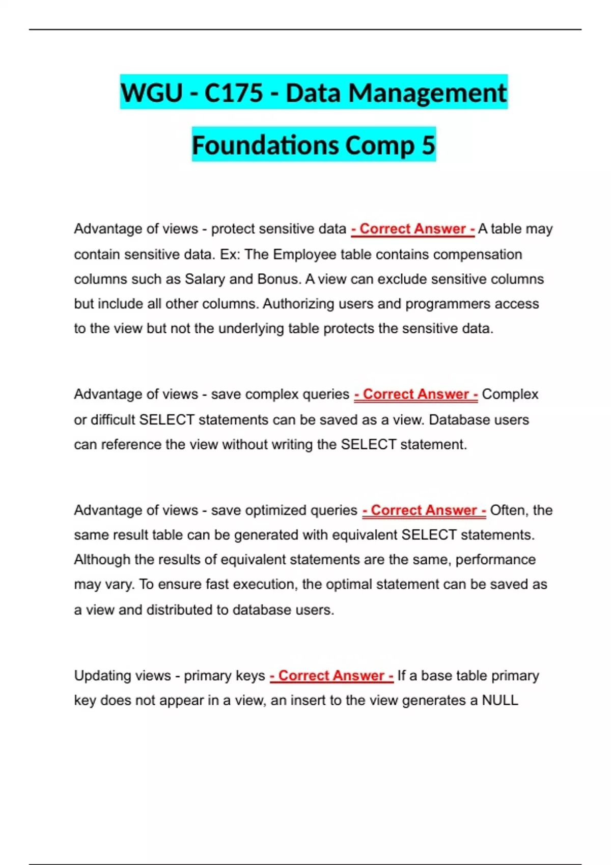 WGU - C175 - Data Management Foundations Comp 5 WGU - C175 - Data Management Foundations Comp 5 WGU - C175 - Data Management Foundations Comp 5
