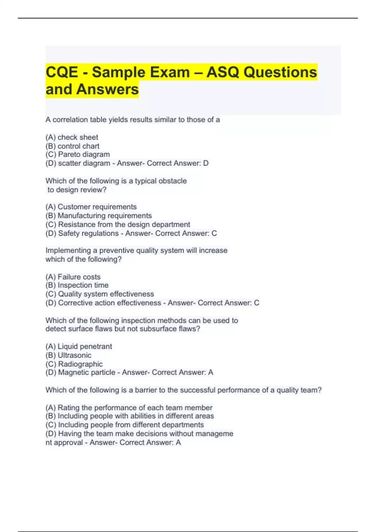 CQE - Sample Exam – ASQ Questions and Answers -Graded A